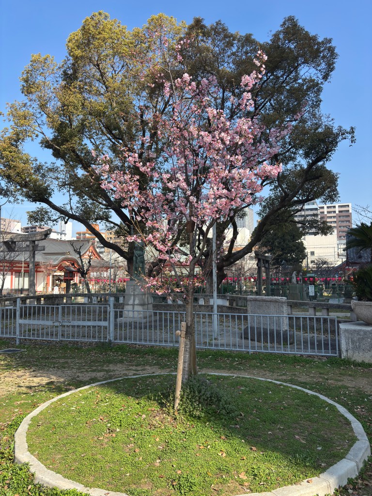 3月27日(金)ここ大阪市の西区堀江では🌸さくらが、少しずつ開花し始めました。 この🌸さくらは、土佐稲荷神社前にある1本の桜です。